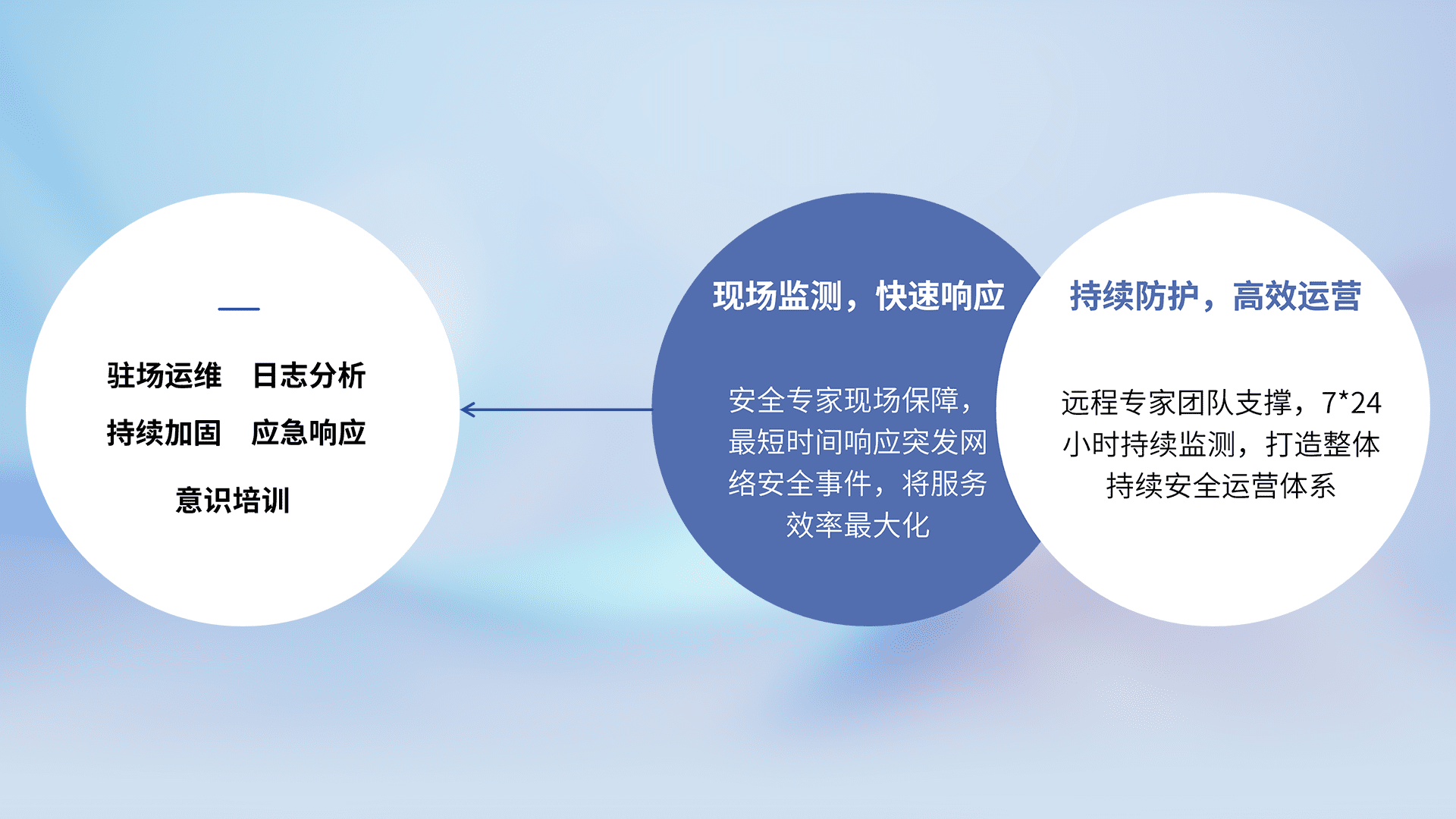 针对客户行业特性,,,提供专属的一站式安全管理服务,,,,帮助客户全面感知网络空间威胁,,,通过安全专家的线上、、线下防护支持,,,实现风险闭环,,将安全保障常态化,,为客户打造常态化安全运维运营服务。。。